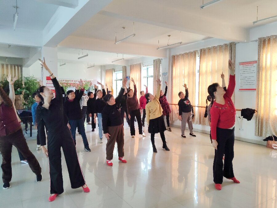 王咏老师在八斗镇教授黄梅戏时,从基础的开嗓与发声练习入手,通过科学的指导帮助老年学员们放松嗓音、找到正确的发声位置,为后续演唱打下坚实基础。在学员们逐渐进入状态后,老师通过播放《树上的鸟儿成双对》经典视频片段进行情境导入,直观展现剧目韵味与演唱技巧,随后逐字逐句拆解唱腔,耐心纠正细节,让学员们在沉浸式体验中感受黄梅戏的独特魅力。马淑芳老师在元疃教授广场舞现场时,结合老年学员的年龄、身材等特点,从基础舞步、手势、节奏把控到动作规范,进行了耐心细致的拆解教学。学员们学习热情高涨、认真跟练,在轻松愉悦的氛围中掌握了规范的、新的舞蹈技巧。 此次活动为基层教学点输送课程10余场,内容涵盖黄梅戏、历史文化、民族舞、腰鼓舞等老年群体喜爱的课程,惠及多名乡村老人。