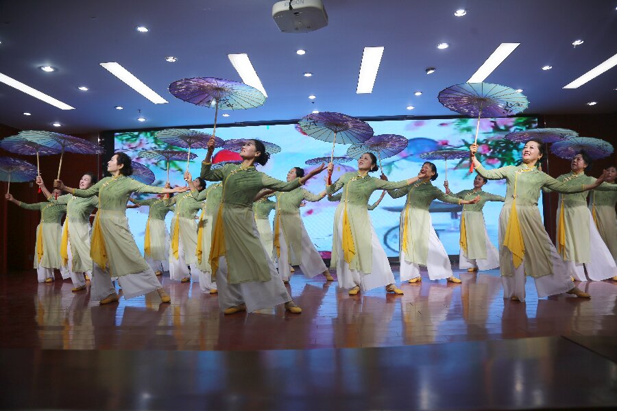 演出在欢快的腰鼓舞《中国全家福》表演中拉开序幕。情景表演唱《长征组歌》、诗朗诵《与岁月同行》、庐州大鼓《登高》、器乐合奏《庆丰收》等精彩节目将现场氛围带入高潮,精彩表演不时博得在场观众热烈的掌声与喝彩,将演出活动的气氛一次次推向高潮。整台汇演在大合唱《歌唱祖国》中落下帷幕。
